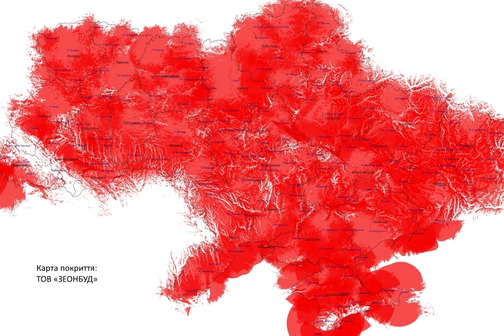 - Самое большое покрытие имеет цифровая сеть ООО «ЗЕОНБУД» как за покрытием населения, так и по территории Украины;