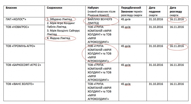 Чиновники рассматривали жалобы довольно поспешно: в течение всего 16 дней (а не 45 дней, как предусмотрено) Комиссия при Минюсте без предупреждения лишает тринадцать владельцев фирм корпоративных прав и имущества в интересах агрохолдинга "Мрия"...