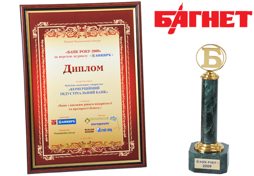 Коммерческий Индустриальный Банк победил конкурсе «Банк года – 2009» в номинации «Банк с высоким уровнем открытости и прозрачности бизнеса»