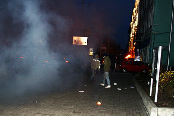 С криками «Свободу Ивану Демьянюку!» хулиганы заблокировали выход из посольства цепью с висячим замком и забросали посольство «дымовухами».