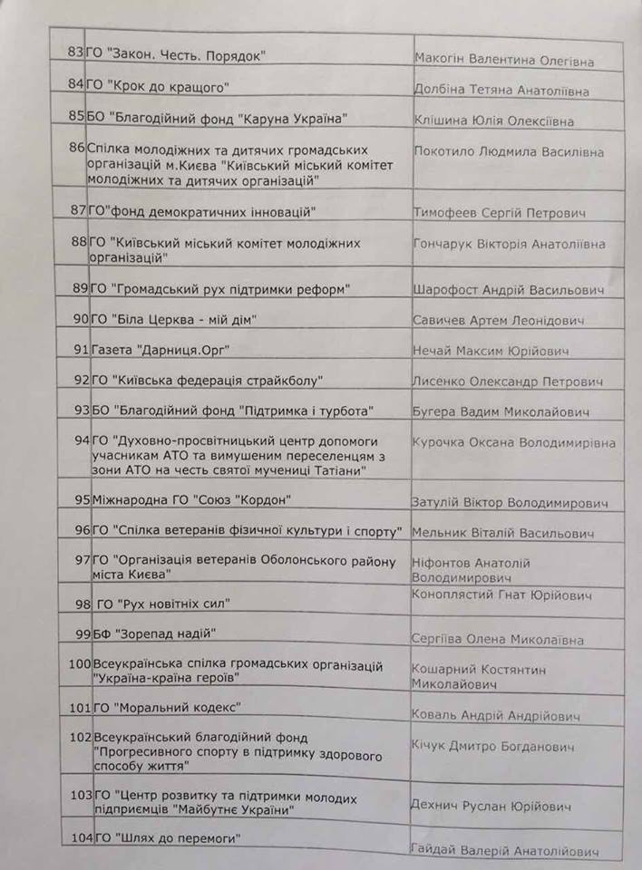№79. Гончарук Василий. Хозяин оболонских наливаек и МАФов — выше были жалобы на незаконное размещение. И почему-то «Футбольна асоціація жінок міста Киева». Явно хочет лоббировать свои бизнес-вопросы, так как на Оболони не проживает. И жену тащит, №88.
