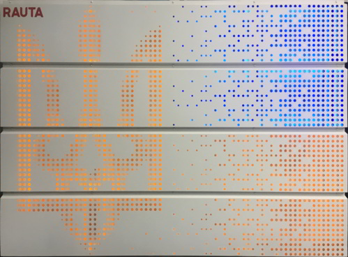 Еще одной новинкой от Rauta стали сэндвич-панели Ruukki повышенной энергоэффективности, применение которых снижает энергопотребление здания до 20% по сравнению с традиционными панелями. Cэндвич-панели серии ENERGY минимизируют энерго потери здания благодаря наличию трубчатого уплотнителя в замках и специальной герметизации стыков. Кроме широкого разнообразия цветов и покрытий сэндвич-панелей Rauta предлагает нанесение на внешнюю обшивку фасадов любых изображений.