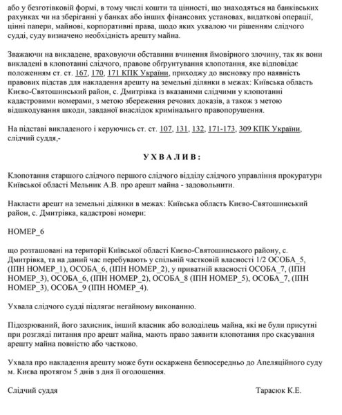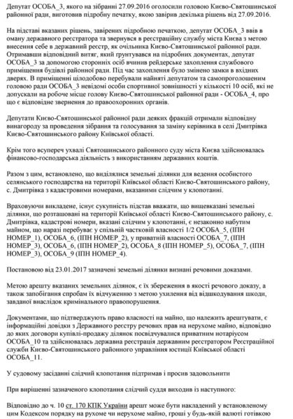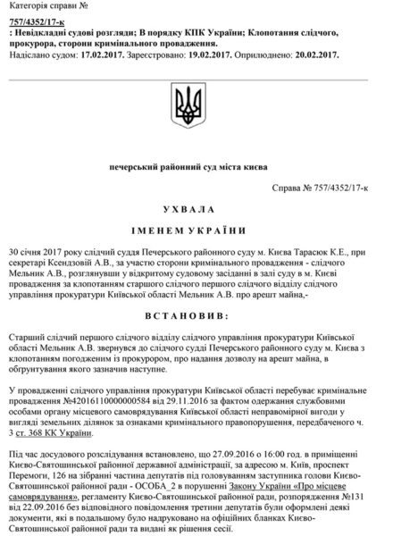А саме: в цьому ж тісному колі було прийнято рішення про роздачу депутатам-змовникам земельних ділянок! Мабуть, в якості бонусів за участь в «акції». Рішення новоявлений глава райради Гедульянов скріпив все тієї ж підробленою печаткою! Правда, через деякий час ці ділянки були заарештовані Печерським судом, рішення якого описує аферу такого рівня, якому позаздрили б відомі персонажі романів Ільфа і Петрова …