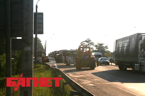 Как уже сообщал «Багнет», с 1-го июня по решению Киевгоргосадминистрации большегрузному транспорту закрыт въезд в столицу. Реализуя решение властей, сотрудники ГАИ останавливают грузовики в километре от КПП города и выстраивают их вдоль дороги, на так называемой «полосе разгона» у обочины. Длинные автопоезда, выстраивающиеся друг за другом, образуют колонну в несколько километров, которая тянется по житомирской трассе через населенные пункты «Стоянка – Капитановка – Мила - Мрия». Очевидно, что водитель автобуса врезался именно в такую, стоящую у обочины, фуру. Правда, этот грузовик остановился, не доезжая метров 300 до крайних машин, стоящих «в очереди» на въезд в Киев.