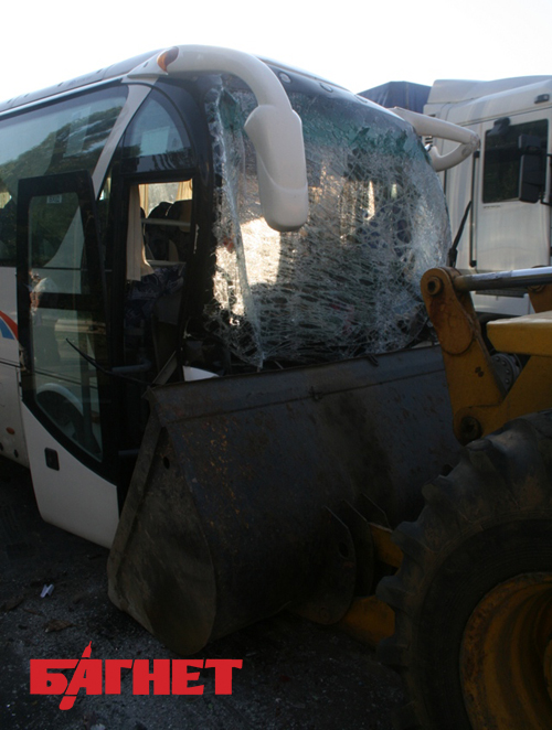 Через 5 часов после аварии, автобус все еще находился на месте ДТП. Столкновение было настолько сильным, что была повреждена ходовая часть автобуса, заклинило КПП и часть других агрегатов. Все попытки сдвинуть его с места не имели успеха. На место ДТП была вызвана дорожная техника, предпринимались попытки убрать поврежденное транспортное средство с проезжей части с помощью дорожного грейдера. После того, как часть поврежденных агрегатов была демонтирована с автобуса, машину удалось оттащить на обочину. Данные работы стали причиной небольшого автомобильного затора. О беспорядках, царящих на житомирской трассе, в связи с дневным «отстоем» грузовиков, «Багнет» расскажет в отдельной публикации.