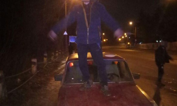 В Шепетовке Хмельницкой обл. на ул. Староконстантиновское шоссе полиция остановила нетрезвого водителя автомобиля ВАЗ 2101 за нарушение правил дорожного движения, после чего он вылез на капот автомобиля и станцевал. Фото остановки автомобиля обнародовала Патрульная полиции Хмельницкой области в Facebook, пишет 112.