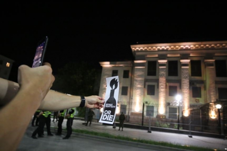 В ночь на 26 мая под зданием посольства Российской Федерации прошла акция в поддержку голодающего украинского режиссера Олега Сенцова и других узников Кремля. Как сообщают "Крым. Реалии", всего в акции приняли участие несколько десятков человек, пишет 112.