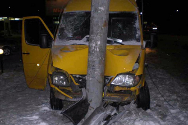 В Днепропетровске микроавтобус врезался в столб