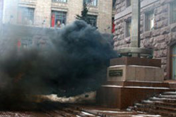 Сегодня члены ультра-правых организаций «Автономное сопротивление» и «Черный комитет» в знак протеста против транспортных проблем совершили нападение на Киевскую мэрию
