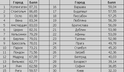 Как сообщает в пресс-служба «Сименс-Украина», первое место в рейтинге принадлежит Копенгагену. За ним следуют Стокгольм, Осло, Вена и Амстердам.