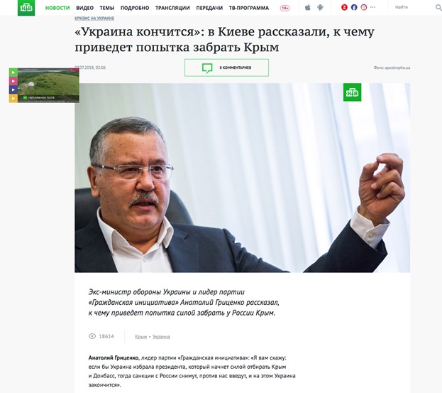 «Анатолий Гриценко, лидер партии «Гражданская инициатива»: «Я вам скажу: если бы Украина избрала президента, который начнет силой отбирать Крым и Донбасс, тогда санкции с России снимут, против нас введут, и на этом Украина закончится»