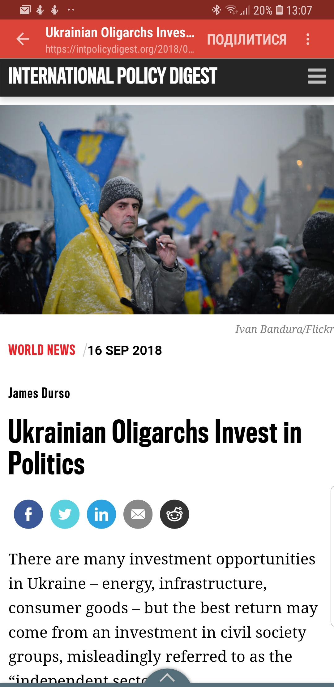 "Учитывая длительную историю влияния Москвы на страну, россияне имели достаточно возможностей попробовать подкупить публичных и непубличных лидеров. Общественные организации, которые принимают активное участие в популяризации демократии или осуществляют медийную активность (а возможно, на самом деле занимаются продвижением интересов олигархов) обычно воспринимаются Западом как хорошее явление - но есть веские основания относиться скептически к этим группам", - пишет американский военный аналитик Джеймс Дюрсо.