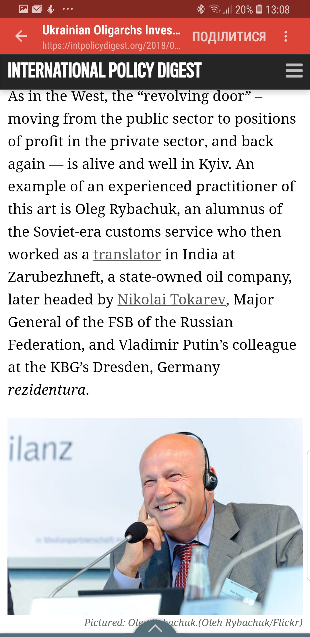 По мнению Дюрсо, подозрительной также является деятельность Рыбачука на посту главы Независимого Стокоррупционного комитета по вопросам обороны (НАКО) украинского отделения Transparency International, где он резко критикует закупку оружия и украинский военно-промышленный комплекс.