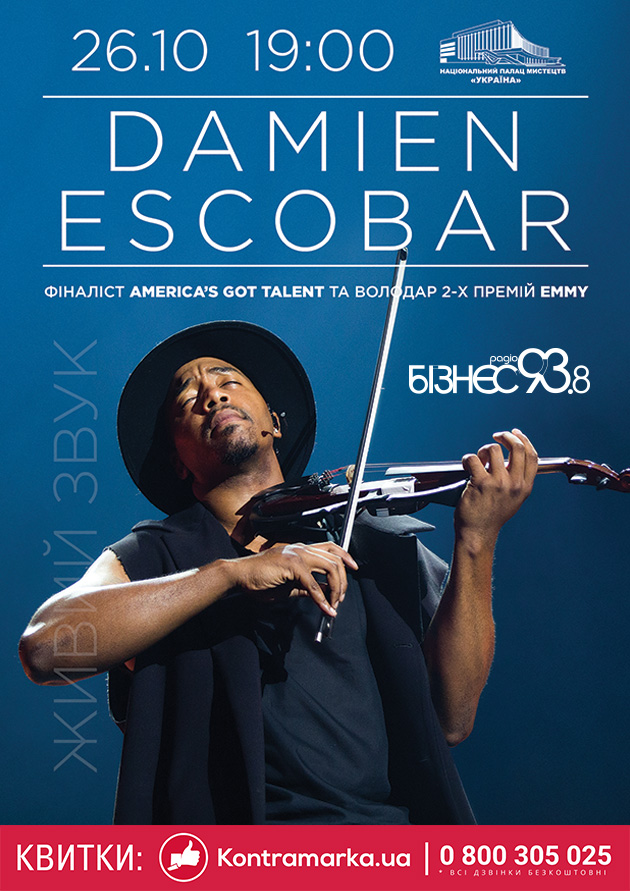 26 октября во Дворце “Украина” выступит всемирноизвестный скрипач из Нью-Йорка, американский бог скрипки Damien Escobar.