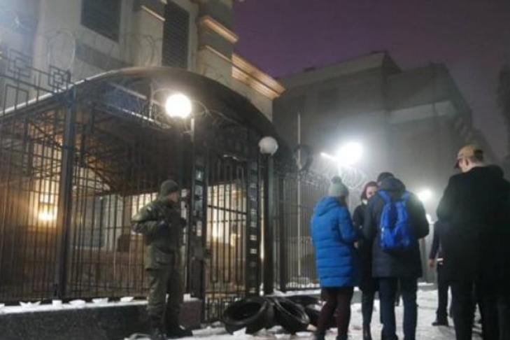 Ранее активисты пытались поджечь шины, которые сносили к ограде, однако силовики призвали их не нарушать общественный порядок и ситуация на этом завершилась.