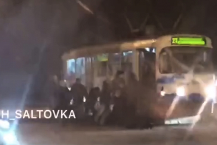 В Харькове вечером 4 декабря пассажирам трамвая, который следовал по маршруту №27, пришлось толкать вагон своими руками.