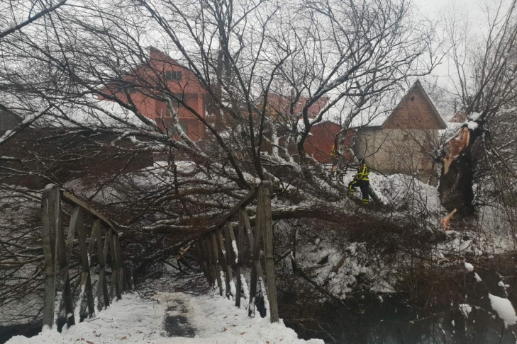 Упавшее дерево сильно усложнило жизнь в закарпатском селе