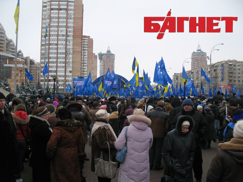 Под зданием Центризбиркома продолжается митинг сторонников Партии регионов, которые приехали в Киев защитить выбор большинства избирателей