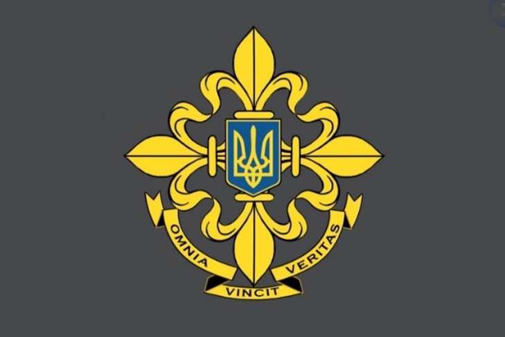 Так, согласно указу, эмблемой Службы внешней разведки Украины является равносторонний золотой лилейный крест, на котором в центре помещен малый Государственный Герб Украины. Под эмблемой полукругом размещена золотая девизная лента с надписью черными буквами девиза "OMNIA VINCIT VERITAS" (с латинского - "Истина побеждает все").