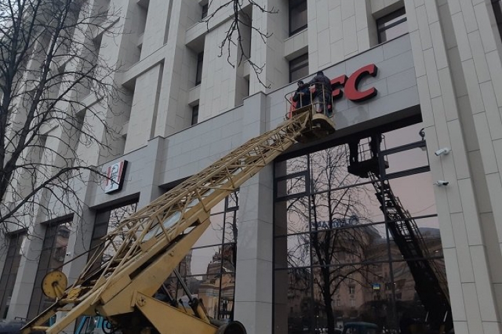На фасаде Дома профсоюзов, на Майдане Незалежности в Киеве, установили новую вывеску заведения быстрого питания KFC, сообщает Громадське.