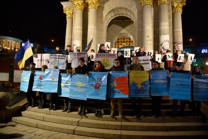 Международное движение #LiberateCrimea при содействии Меджлиса крымскотатарского народа, Крымскотатарского Ресурсного Центра, Либерально-демократической лиги Украины провели на Майдане Независимости в Киеве акцию ко дню крымского сопротивления российской оккупации "Украина, помни: Крым оккупирован".