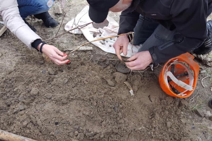 "Во время посадки второй очереди деревьев на площадке перед арестованным "Поділ Град Вінтаж" мы нашли клад! Какие-то древние монеты. Мы их сразу показали журналистам, которые снимали нашу акцию самосада, позвонили в институт сохранения архитектурных памятников и вызвали полицию", - сообщила сообщество.
