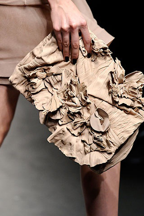 Это второй модный тренд сезона весна-лето 2010. Большие сумки, как, впрочем, и маленькие, по-прежнему будет модно носить в руках. Это касается даже сумок с длинными ручками - их просто нужно наматывать на запястье.
