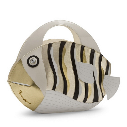 Огромный выбор сумок необычной формы предлагает Braccialini. Здесь есть сумки в виде рыбок, помидоров, домиков, саквояжи классической формы с забавными узорами.