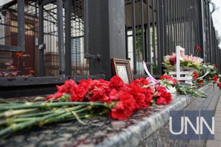 Украинцы приносят цветы под посольство России в Киеве. Делают это в честь скорби по погибшим в авиакатастрофе в московском аэропорту Шереметьево, пишет УНН.