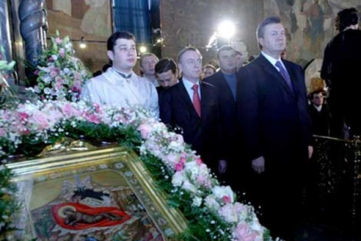 Святейший Патриарх Московский и всея Руси Кирилл и Блаженнейший митрополит Киевский и всея Украины Владимир совершают молебен в Киево-Печерской лавре. На богослужении присутствует Виктор Янукович