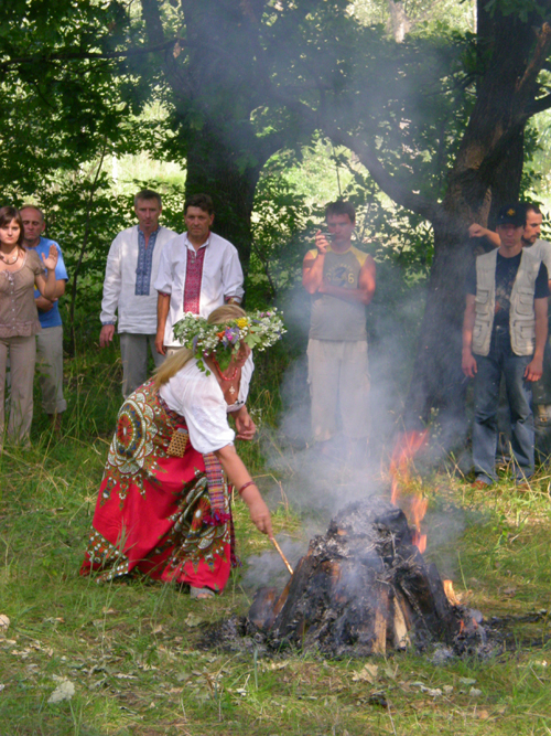 В костер Зореслава сначала вылила бокал вина. Когда зашла речь о жертве, которую принесут богу, стало не по себе: сразу вспомнился черный кот, которого 10 минут назад подкармливали готовящимся неподалеку шашлыком. Но обошлось без убийств. Перун оказался еще тем «гурманом»: ему еще в древности приносили в жертву овсяную кашу, пиво, пироги, зерно, сало, овсяный хлеб, рыбу (исключительно щуку), локшину, крапиву, молоко, творог, яйца, ягодное вино… и почему-то ткань.