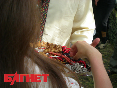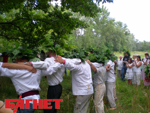 После этого всем присутствующим предложили освятить их обереги. Все принялись интенсивно стаскивать с шеи разные висюльки, и класть их на поднос. Когда Зореслава освятила и раздала назад украшения, началось самое главное: она благословила каждого присутствовавшего мужчину и выдала им по дубовому венку.