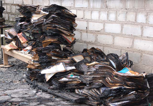 Площадь пожара составила 40 квадратных метров. Огнем уничтожена комната регистрации вместе с картотекой.