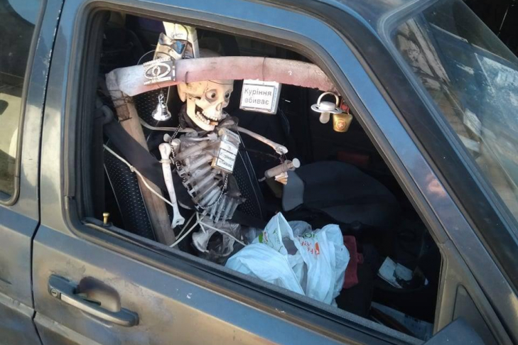 Пользователь Николай Сержанов поделился предположением, что водитель готовится к Хэллоуину, а Слава Гайдучок написал, что скелет на пассажирском сиденье - это призыв бросить курить.