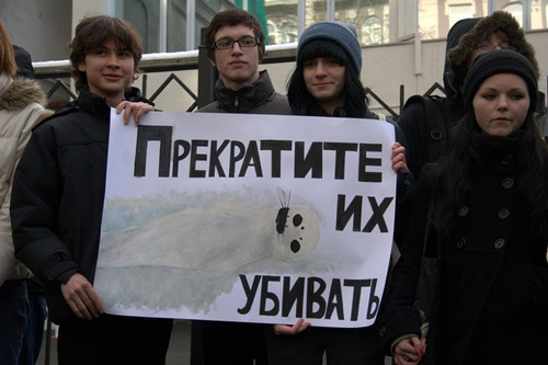 «Остановите кровавую охоту на тюленей!», «Надел шубу – убил ребенка!» - с такими лозунгами на русском и английском языках защитники животных из Общественной инициативы «Стоп зооциду!» пикетировали посольство Канады 15 марта. В акции протеста приняло участие более 50 человек, сообщили корреспонденту «Багнета» организаторы акции протеста