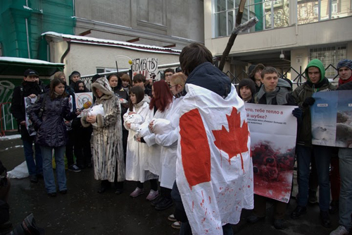 «15 марта - Всемирный день действий против охоты на детенышей тюленей и день открытия охоты на них, - поясняют участники акции, - Канада же является основным поставщиком продукции тюленьего промысла, и более 95% убитых тюленей в Канаде - беззащитные младенцы возрастом до трёх месяцев. Их убивают ради дорогостоящего меха», - заявил один из организаторов акции в мегафон под стенами посольства..