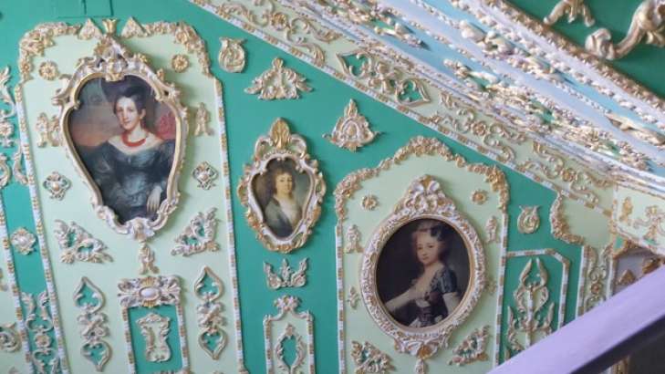 Он увлеченно показывает нам репродукции новых картин, которые установил на стенах и оформил лепниной, и в восторге от небольших статуэток принца и принцессы.