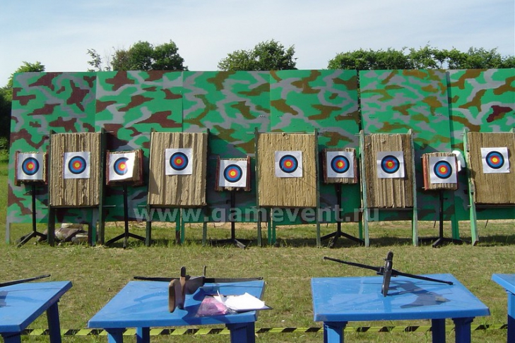 В первом любителям стрельбы предоставляется традиционная для тиров пневматическая винтовка, из которой можно стрелять в стандартные мишени по 50 коп. за выстрел. Во втором посетителям выдается винтовка для стрельбы в пейнтбол и пули с краской, которыми можно «украсить» карикатурные изображения Президента, премьер-министра и лидера оппозиции за 1,5 грн.