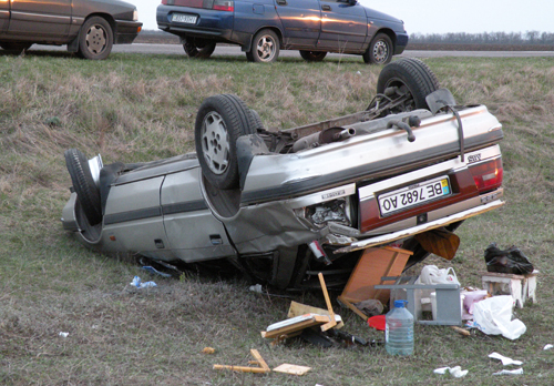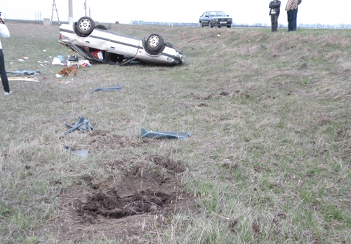 Как следствие, автомобиль оказался в кювете, и перевернулся.
