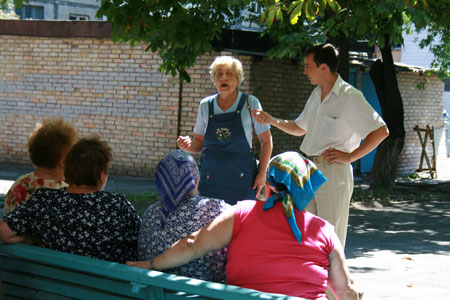 Летняя жара и скука выгоняют пенсионеров на лавочки тенистых киевских дворов. Полдень – до любимых сериалов и раздражающих новостей еще далеко. Старики сплетничают, делятся слухами и ругают политиков.