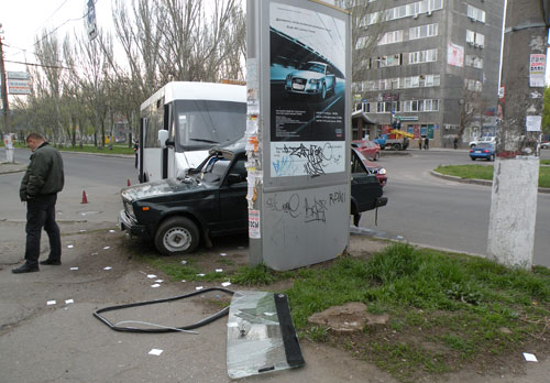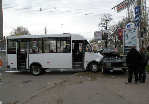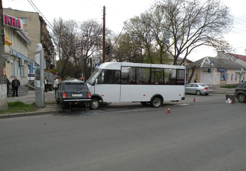В городе Николаеве на нерегулируемом перекрестке местный житель, находившийся за рулем ВАЗ-21043, допустил столкновение с двигающимся по главной дороге маршрутным микроавтобусом а/м «Рута-25».