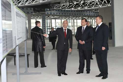 Первым на поле харьковского аэропорта приземлился самолет с эмблемой «Газпрома» и его предправления Алексеем Миллером на борту. Попозже, с некоторым опозданием относительно заявленного времени, сел самолет президента Украины. От трапа Виктор Янукович прошел в строящийся к ЕВРО-2012 терминал аэропорта. Это - один из наиболее популярных объектов города в программе официальных лиц. Буквально на днях здесь прохаживался президент УЕФА Мишель Платини, и, как он потом заявил журналистам, остался очень доволен увиденным. Янукович пришел в терминал в сопровождении харьковского губернатора Михаила Добкина и президента группы DCH Александра Ярославского - основного спонсора и координатора подготовки Харькова к ЕВРО-2012.