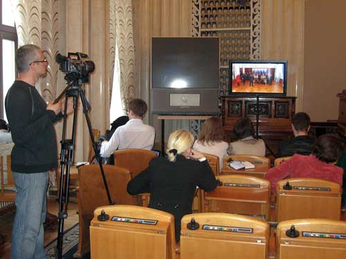 Большинство журналистов, призванных освещать эту встречу в своих изданиях, на самой встрече фактически не присутствовали. Та часть фото- и видеооператоров, которая смогла заснять прилет в Харьков Януковича и его краткое знакомство со строящимся терминалом, на само мероприятие в стенах обладминистрации попросту не успевали. Во всяком случае, так считалось. Впрочем, большинству фотокоров и видеооператоров, особенно представителям местных изданий и телеканалов, не стоило расстраиваться по этому поводу, поскольку «доступа к телам» государственных мужей они все равно не получили бы.