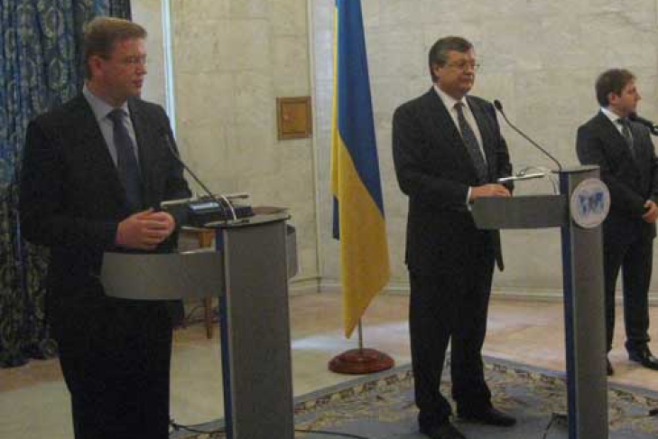 22 апреля герой публикаций «Багнета» Министр иностранных дел Украины Константин Грищенко демонстрировал журналистам свою техническую осведомленность в вопросах защиты персональных данных граждан и их идентификации. Вообще-то Министр встречался с Европейским комиссаром по делам расширения Евросоюза и политики соседства Штефаном Фюле (на фото -- слева). По итогам встречи дипломаты провели брифинг, на котором ознакомили журналистов с итогами беседы и высказались о перспективах дальнейшего сотрудничества. По словам присутствовавших журналистов, действо было чинным и скучным: произносились общие и правильные слова. Сначала выступил Грищенко, затем – Фюле на английском и его переводчик на украинском.