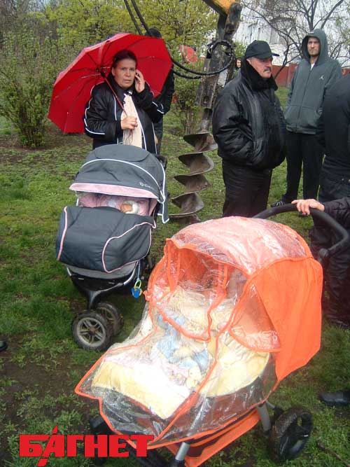 Кроме того, нешуточные баталии разыгрались с блокированием работы трактора: мужчины ложились под колеса, а женщины с детскими колясками становились под бур. Единственное что трактористу в этот день удалось беспрепятственно – несколько раз проехать по периметру и благополучно удалиться в неизвестном направлении.