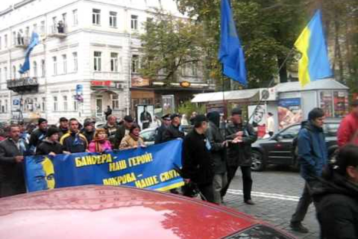 После этого, около 400 приверженцев ВО «Свобода» провели альтернативное шествие по Львову. Они развернули 200-метровый флаг Украины и выкрикивали лозунги «Слава Украине» и «ОУН-УПА – государственное признание».