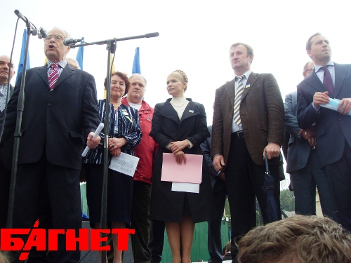 Речь Юлии Тимошенко была запланирована на конец митинга. Тем временем на разогреве работали прочие представители оппозиции. Лидер БЮТ внимательно слушала коллег.