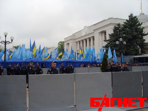 Правоохранительные органы и участники митинга начали собираться у стен ВР задолго до сессии. Приблизительно с 8.00 часов утра на всех подходах к зданию украинского парламента расположились милицейские посты, стояли машины скорой помощи. Неподалеку от Кабмина остановились несколько автобусов со спецназовцами, готовыми в случае беспорядков вмешаться в ситуацию.