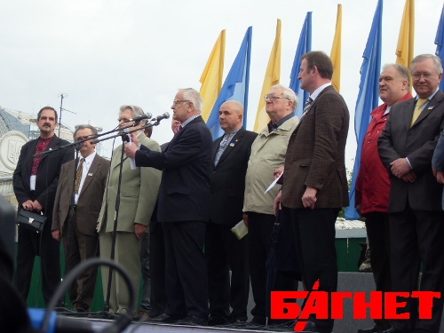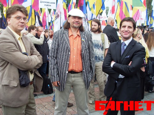 В парке возле парламента было людно и шумно. Там собрались представители новосозданного Комитета защиты Украины (БЮТ, «Батькивщина», «Нородный Рух», ВО «Свобода»), сторонники партии «Реформы и порядок» и общественной организации «За Украину». Из колонок, установленных возле импровизированной сцены, гремела украинская музыка.