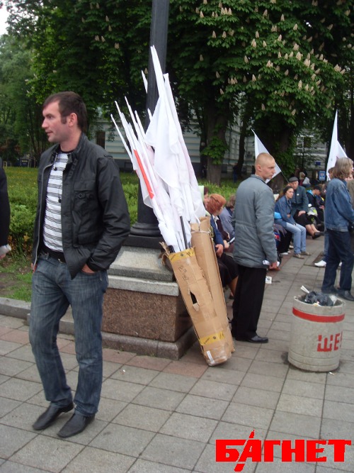 Представители оппозиционной части митинга активно раздавали агитационные материалы. По листовкам ВО «Свобода», призывающим не допустить ратификацию договора о Черноморском флоте (которая состоялась 27 апреля – ред.), можно было предположить, что митинг организовали на скорую руку, и что собравшиеся не совсем понимают, зачем их привели под стены ВР. Тем более, конкретные лозунги протестующих можно было сосчитать по пальцам, а представители сторонников оппозиции не смогли внятно объяснить, за что или против чего они выступают.